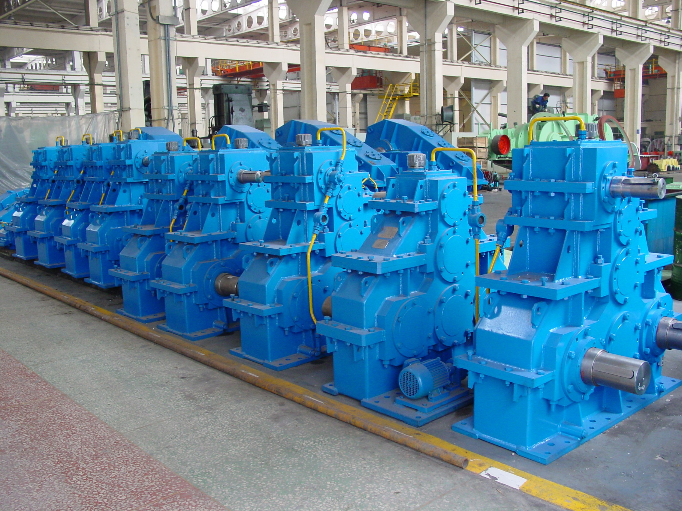 起升減速機(jī)用于起重機(jī)起升機(jī)構(gòu)的機(jī)械傳動。根據(jù)各類型起重機(jī)起升機(jī)構(gòu)的技術(shù)性能要求和型式布置,可設(shè)計為行星傳動、棘輪棘爪傳動、中間過輪硬聯(lián)接式傳動的三減速機(jī)、二減速機(jī)或單減速機(jī)布置等,設(shè)計、工藝性能優(yōu)良,使用性能可靠;運行減速機(jī)用于起重機(jī)行走機(jī)構(gòu)的機(jī)械傳動。根據(jù)各類型起重機(jī)行走機(jī)構(gòu)的技術(shù)性能要求和型式布置,可設(shè)計為底座式和三支點式聯(lián)接型式,設(shè)計、工藝性能優(yōu)良,使用性能可靠