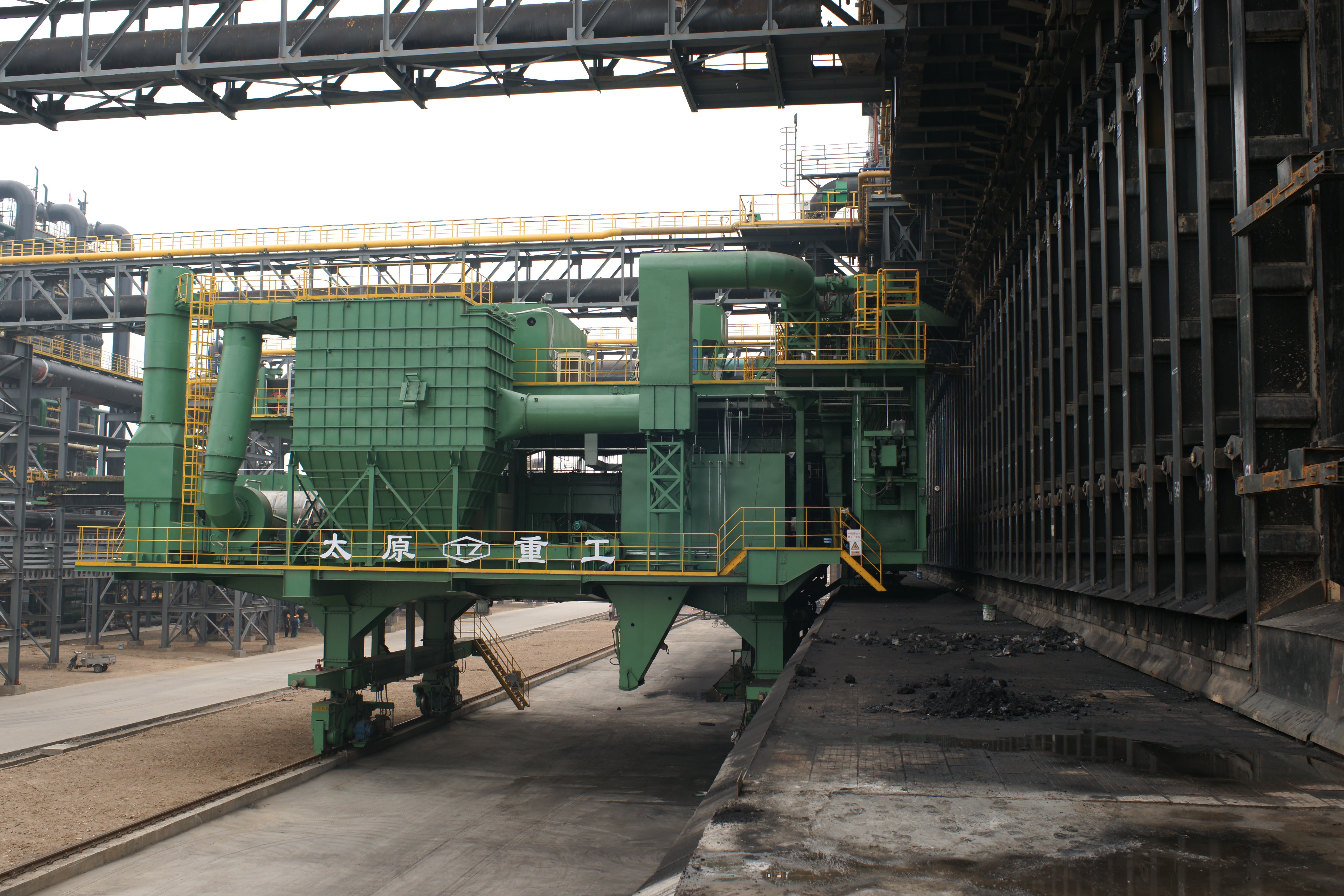 太重頂裝型焦爐機械設(shè)備,產(chǎn)品涵蓋4.3米、6米、7米、7.63米等規(guī)格,適用于年產(chǎn)60萬噸~200萬噸焦爐。主要包括裝煤車、推焦車、攔焦車、電機車、熄焦車、焦罐車等。我公司累計生產(chǎn)該類型設(shè)備100余套。