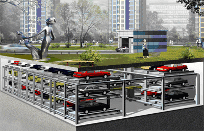 PPY平面移動類機械式停車設備是在同一水平層上用搬運器平面移動汽車或載車板,多層之間是靠升降機來實現不同層之間的轉換,實現汽車的存取。