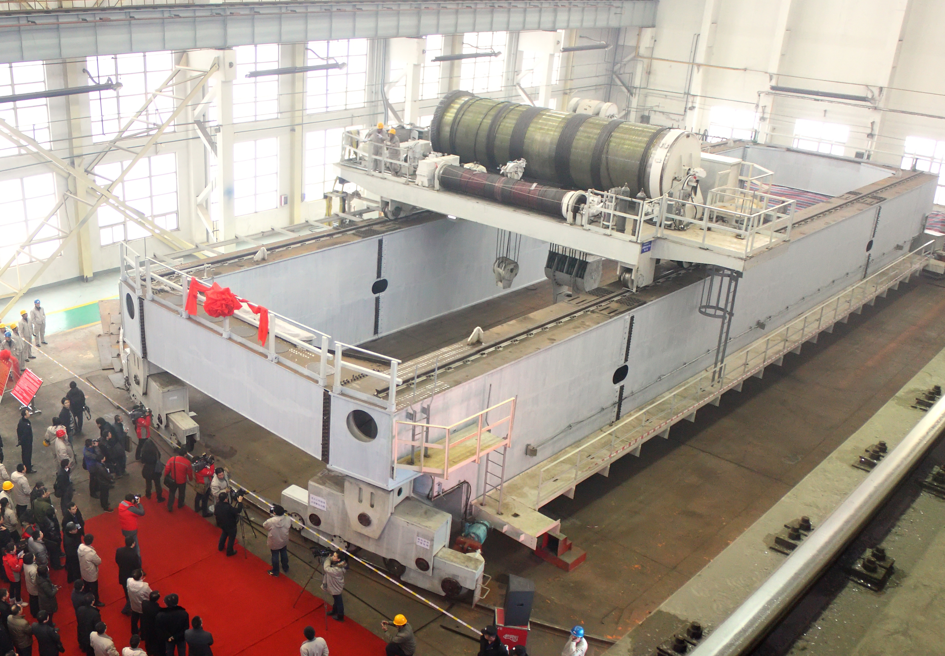 核島環(huán)行起重機,主要為核電站反應(yīng)堆廠房內(nèi)的重型設(shè)備提供安裝、維修服務(wù),以及反應(yīng)堆換料提供吊運服務(wù)。大車車輪沿著圓柱形廠房上部的環(huán)形軌道運行,簡稱核環(huán)吊。太重已經(jīng)為秦山、山東海陽、田灣、石島灣等核電站提供了10余臺套核島環(huán)行起重機。
