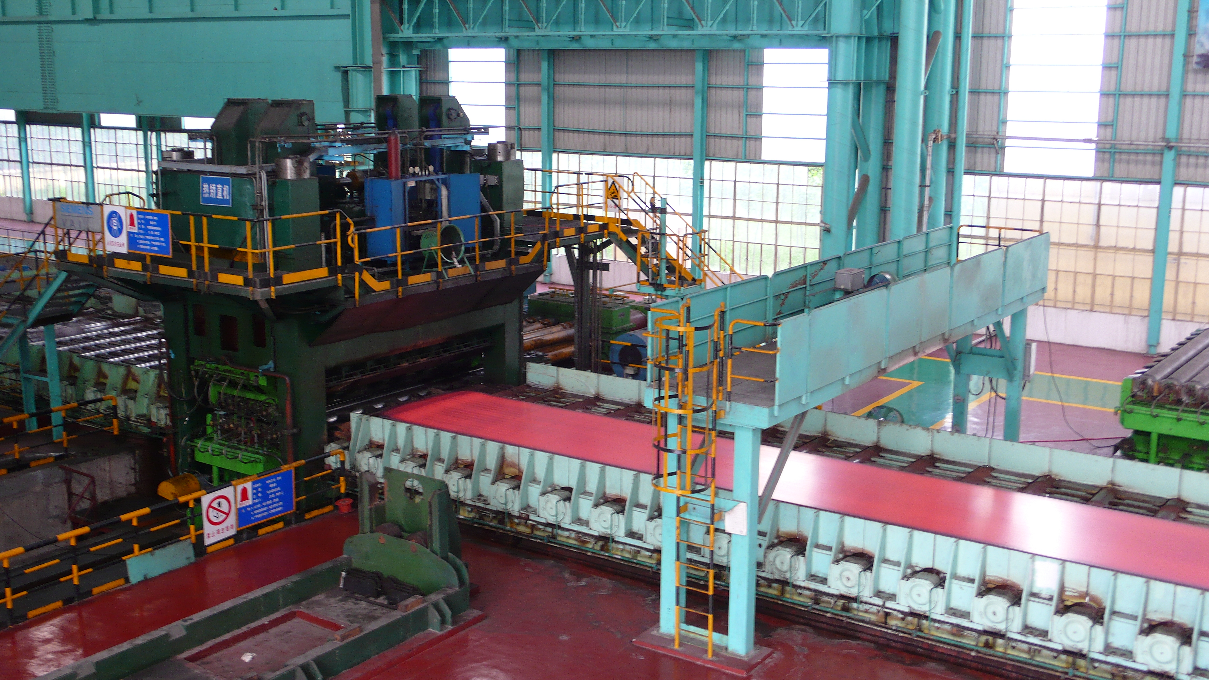 5輥中厚板、寬厚板預(yù)矯正機(jī)可用于矯正厚度6-60mm 的低合金高強(qiáng)度鋼板、高強(qiáng)度工程機(jī)械用鋼、優(yōu)質(zhì)碳素結(jié)構(gòu)鋼板,布置在精軋機(jī)預(yù)冷卻設(shè)備之間,初步矯平需要控制鋼板的冷卻速度,提高冷卻操作的安全性及冷卻效果。7輥全液壓矯直機(jī)用于矯正厚度為25-35mm、需要感應(yīng)加熱的不銹鋼板,其壓下與彎輥均為液壓驅(qū)動(dòng),矯正后的鋼板整體不平度小于10mm,屬于最新結(jié)構(gòu)的不銹鋼板帶矯正機(jī)。