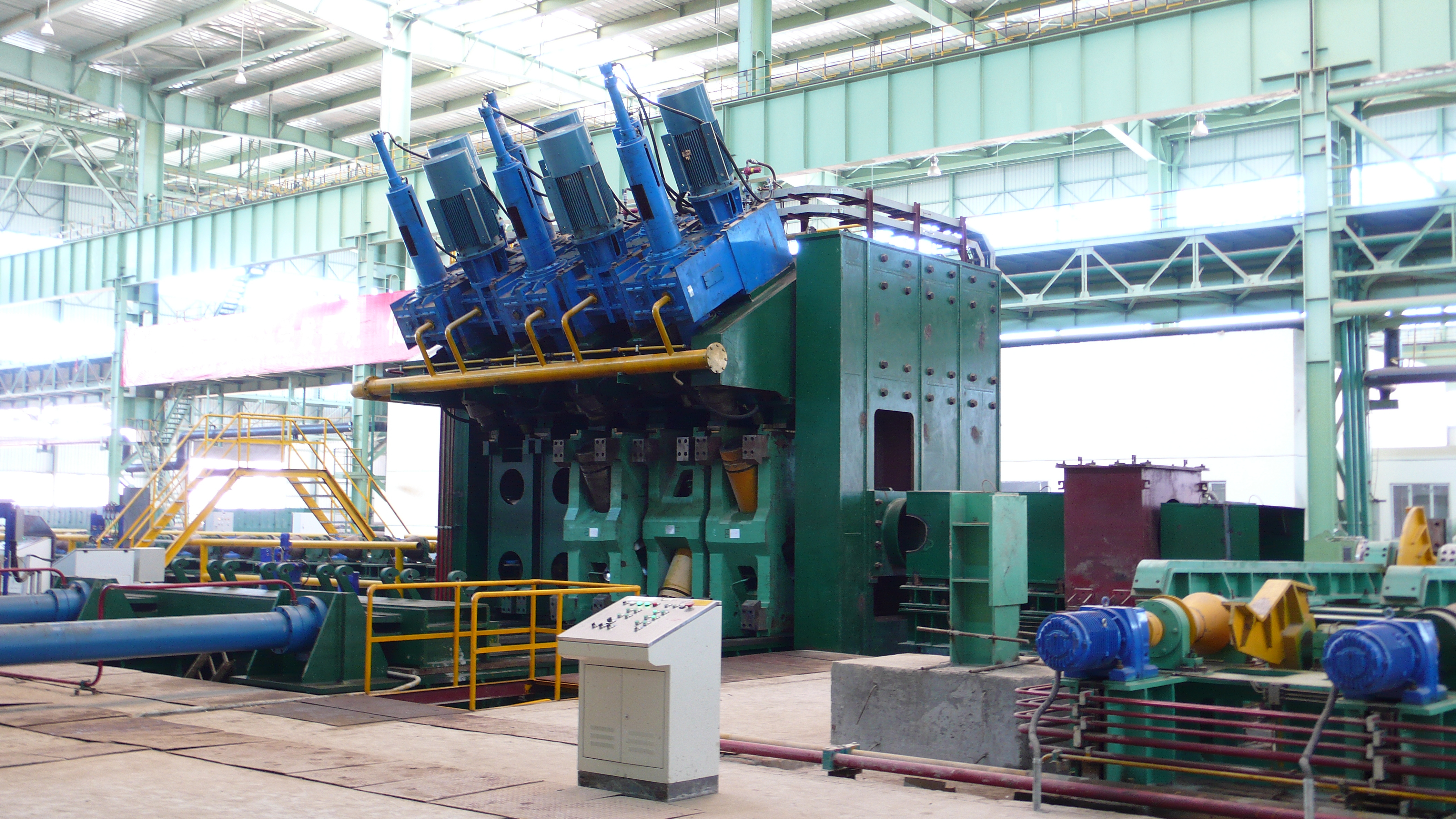 大口徑無(wú)縫鋼管生產(chǎn)成套設(shè)備主要用于生產(chǎn)核電用管、高壓鍋爐管、高壓化肥管、能源用管、氣瓶管、結(jié)構(gòu)用管等多種用途鋼管。機(jī)組穿孔工藝有壓機(jī)壓力穿孔和斜軋穿孔兩種形式,軋管工藝有皮爾格軋制和回轉(zhuǎn)軋制兩種形式,公司設(shè)計(jì)制造的Ф720mm多功能穿軋機(jī)組,實(shí)現(xiàn)了大口徑鋼管生產(chǎn)工藝的一次突破。