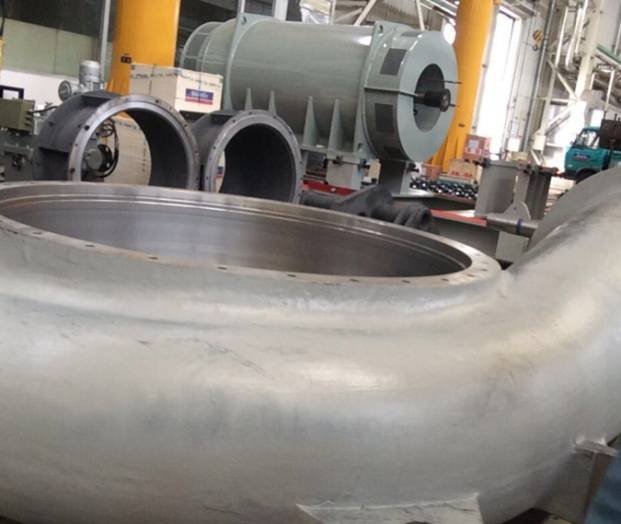 鼓風(fēng)機(jī)蝸殼,成品輪廓3900mm*3650mm*1500mm,毛重20t,材質(zhì)ZG07Cr19Ni9。