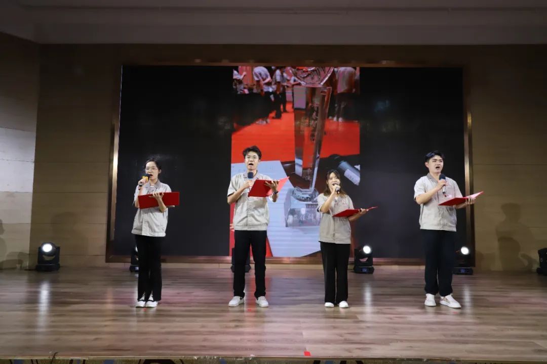 全場活動共分為矢志砥初心、激昂正青春、建功新時代三個篇章。晚會在VLOG《一起向未來》短視頻中拉開了帷幕,傳統(tǒng)藝術(shù)三句半《太重新人說太重》展現(xiàn)出新入職大學(xué)生以堅定的信念、過硬的本領(lǐng)、擔(dān)當(dāng)?shù)挠職庾V寫太重贊歌的精氣神?!白屛覀兙o跟‘五年三步走’的戰(zhàn)略方向,以青春之名,放飛理想,為輝煌的太重獻(xiàn)熱爭光!”原創(chuàng)詩朗誦《以太重之名為太重爭光》表述著新入職大學(xué)生的激情與夢想,激勵著太重新青年用奮斗和奉獻(xiàn)圓夢,共同繪就太重美好的明天。