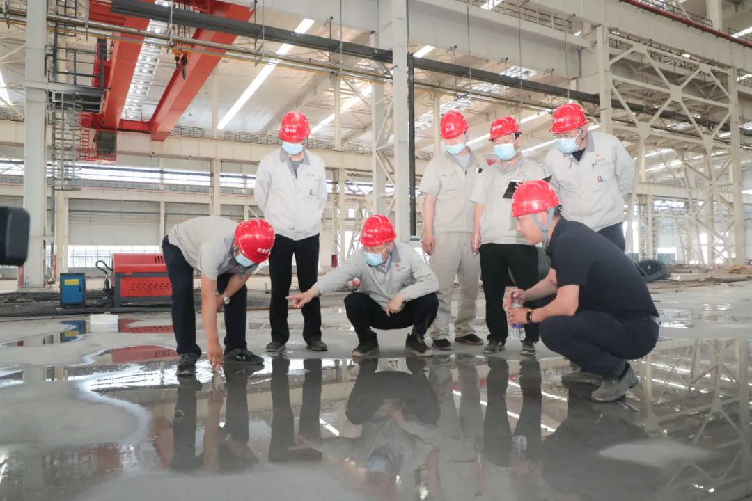 五月黃金季,施工忙正酣。廠房墻面上,“搶晴天、戰(zhàn)雨天,持之以恒保安全,精益求精保質量,披星戴月保進度”的條幅赫然醒目、催人奮進。項目建設現場塔吊高聳、機聲隆隆,工人加緊施工,一派熱火朝天的忙碌景象。調研中,韓珍堂深入施工現場,分別察看了下料中心、焊接中心、加工裝配、油膜、電氣木模等廠房建設進度。他邊走邊了解,時不時停下腳步,仔細詢問檢查。他指出,要加強組織,強化管理,統(tǒng)籌協調各方建設力量和資源,進一步細化工程節(jié)點,全速推進工程建設。細節(jié)決定質量,細節(jié)決定成敗。要堅持高標準、嚴要求、重細節(jié),以精益求精的精神推進工程建設,用心用情用力打造無與倫比的精品工程、標桿工程、示范工程。韓珍堂還對地面硬化、道路綠化、管道優(yōu)化等細節(jié)工作提出具體要求。