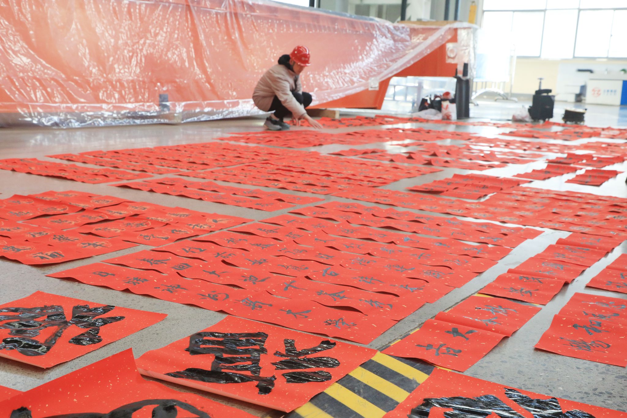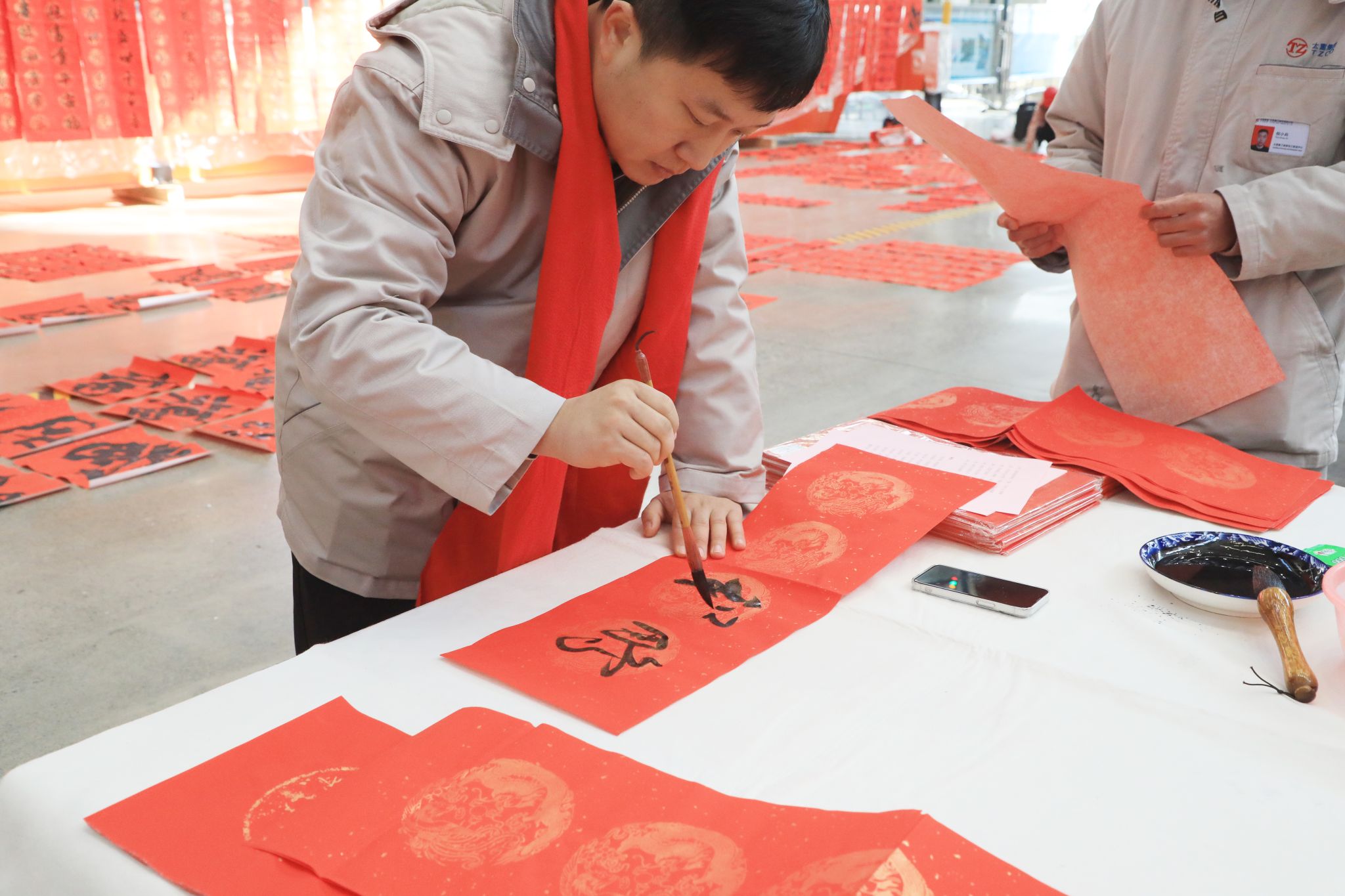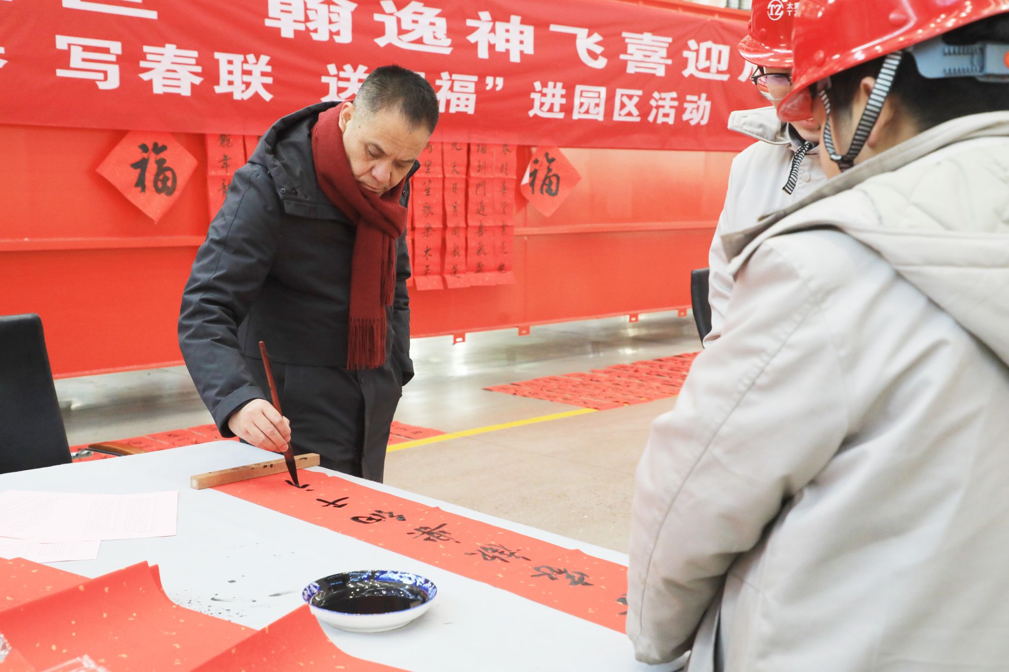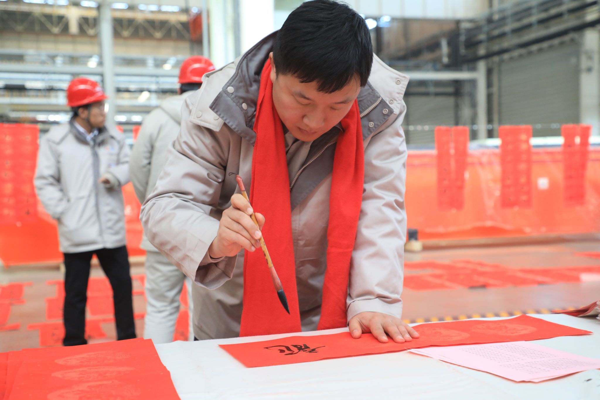 為豐富職工文化生活、喜迎龍年新春,1月23日,公司工會(huì)舉辦“迎新春 寫(xiě)春聯(lián) 送祝?!边M(jìn)園區(qū)活動(dòng),在太重智能高端裝備產(chǎn)業(yè)園區(qū)加工裝配聯(lián)合廠房,來(lái)自省內(nèi)的知名書(shū)法家和公司書(shū)法愛(ài)好者們齊聚一堂,為各子分公司職工義務(wù)書(shū)寫(xiě)春聯(lián),以這種喜慶的形式向廣大干部職工送上春節(jié)的祝福。集團(tuán)公司黨委專職副書(shū)記、副董事長(zhǎng)、工會(huì)主席張新偉參加活動(dòng)。