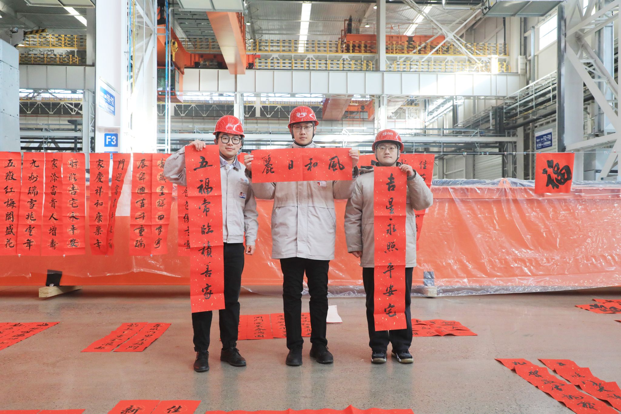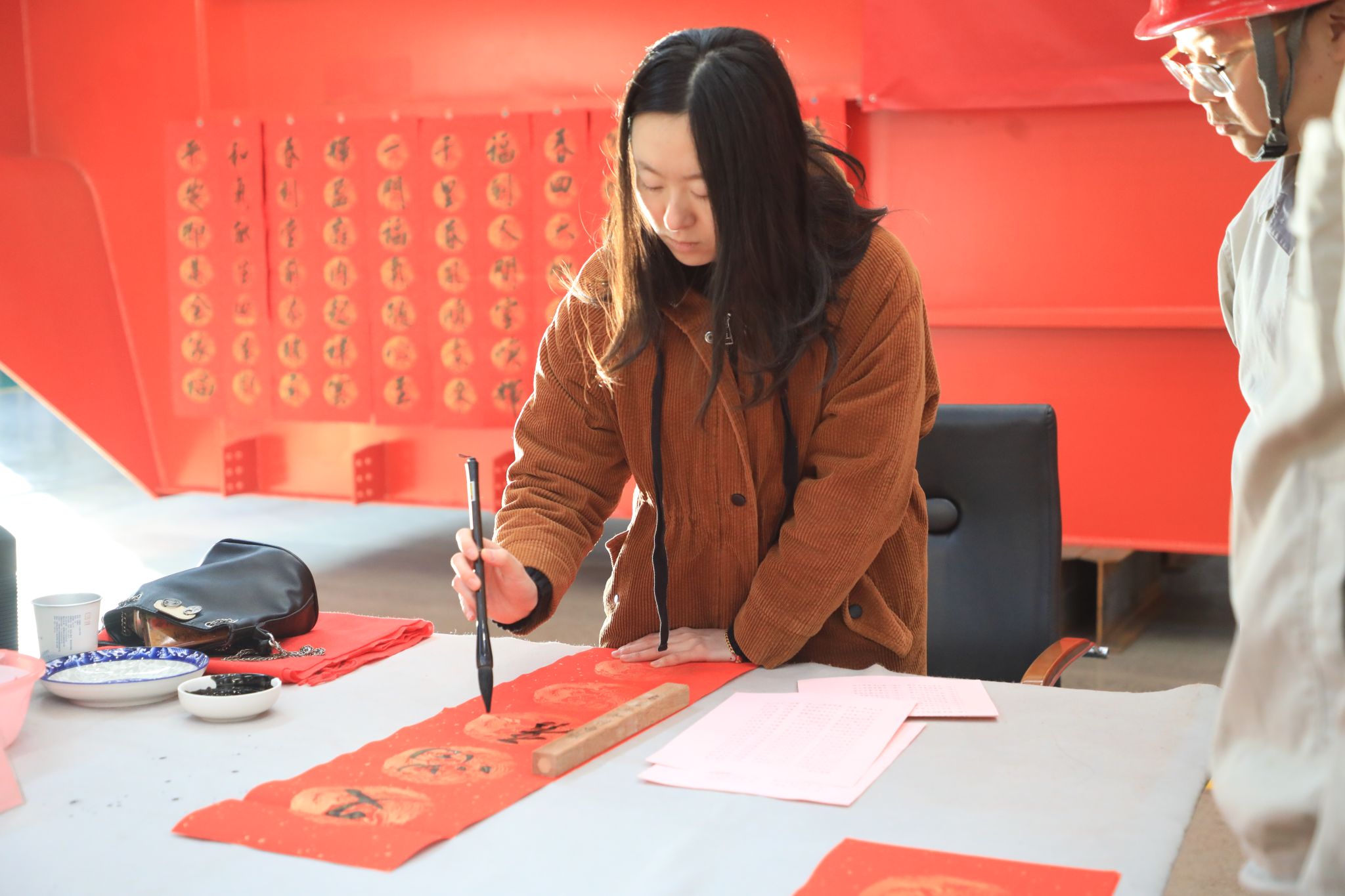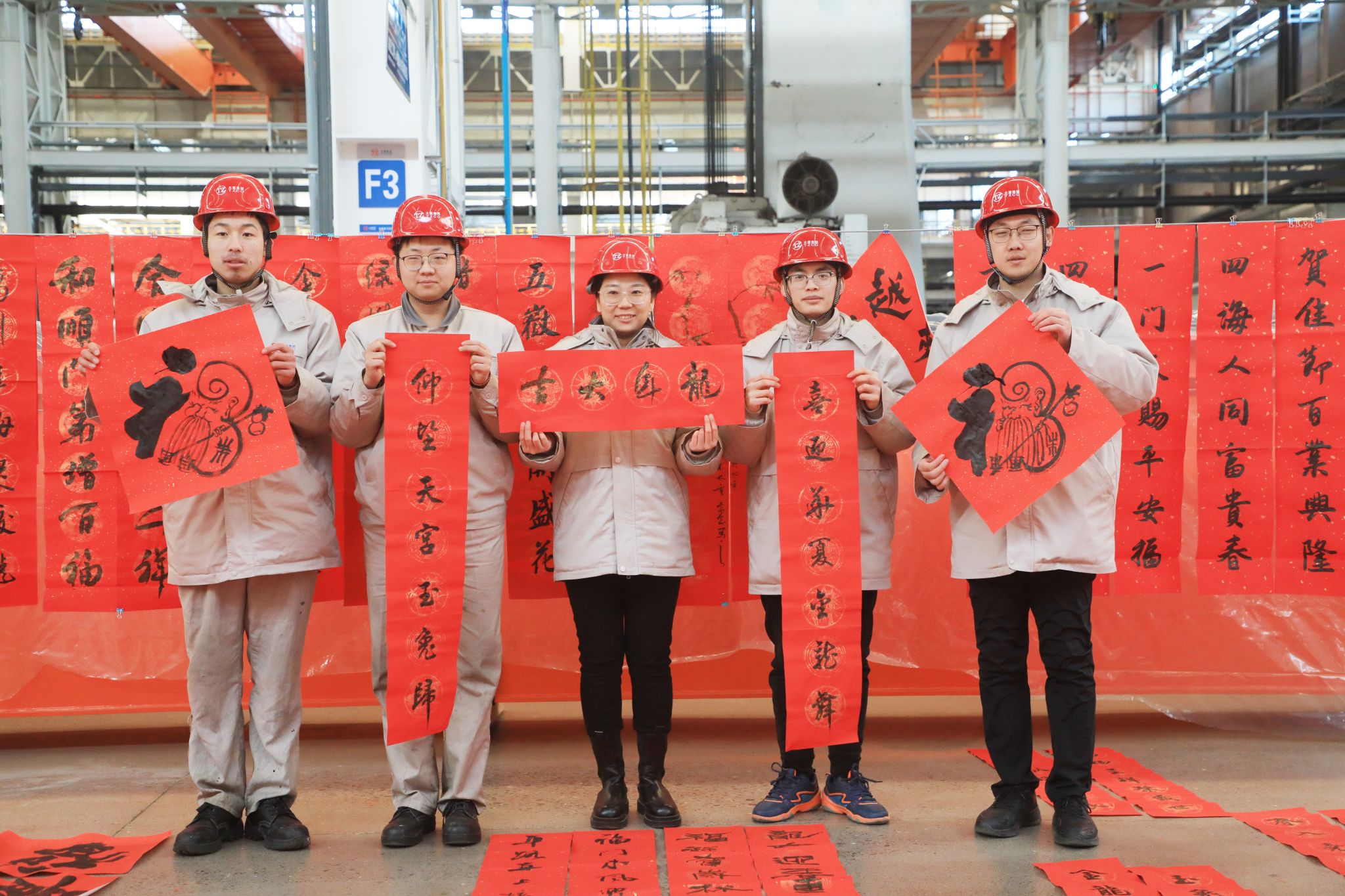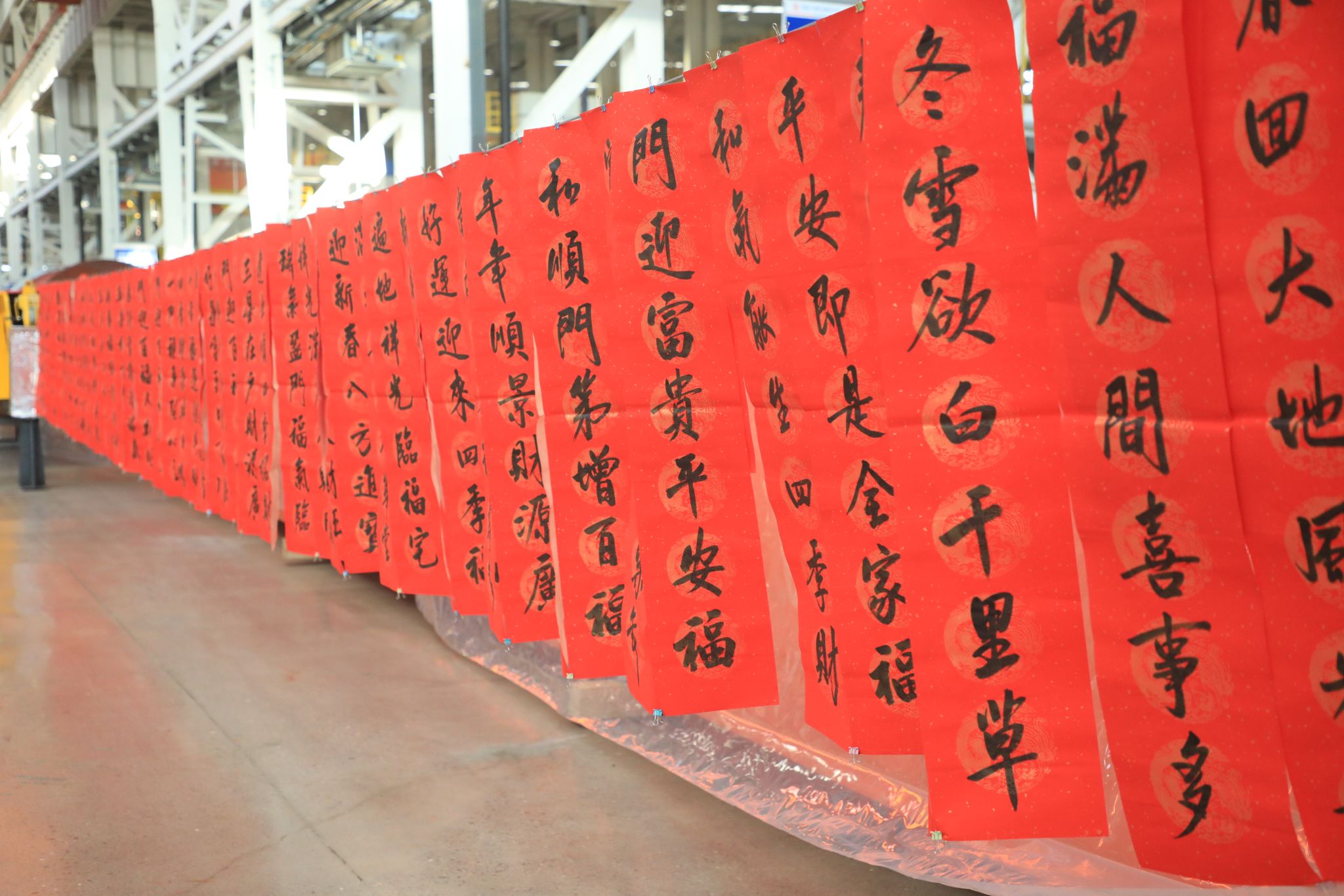 為豐富職工文化生活、喜迎龍年新春,1月23日,公司工會(huì)舉辦“迎新春 寫(xiě)春聯(lián) 送祝?!边M(jìn)園區(qū)活動(dòng),在太重智能高端裝備產(chǎn)業(yè)園區(qū)加工裝配聯(lián)合廠房,來(lái)自省內(nèi)的知名書(shū)法家和公司書(shū)法愛(ài)好者們齊聚一堂,為各子分公司職工義務(wù)書(shū)寫(xiě)春聯(lián),以這種喜慶的形式向廣大干部職工送上春節(jié)的祝福。集團(tuán)公司黨委專職副書(shū)記、副董事長(zhǎng)、工會(huì)主席張新偉參加活動(dòng)。