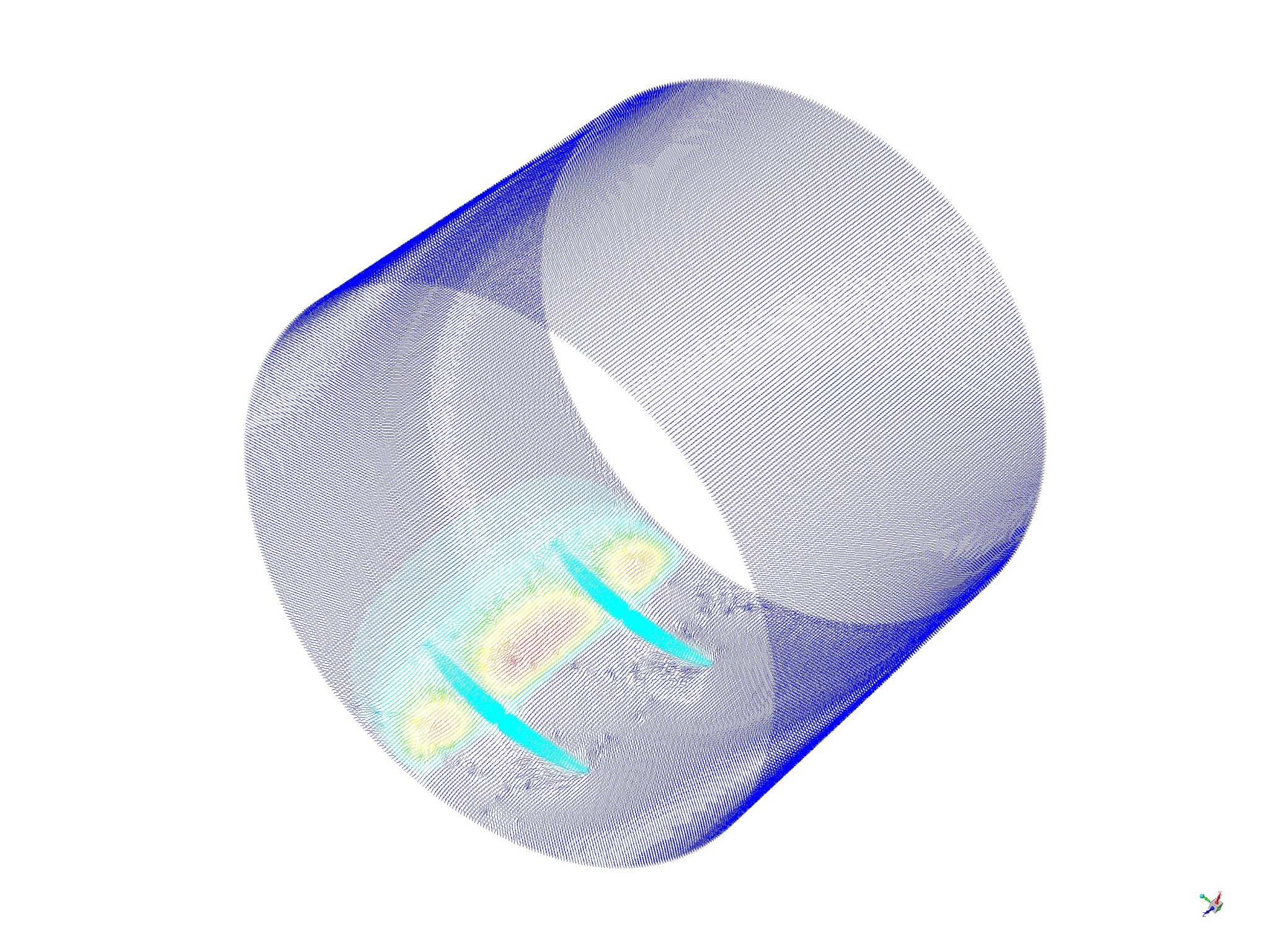 計(jì)算的流體域包含了上百萬(wàn)個(gè)六面體單元,可以準(zhǔn)確得知受力區(qū)域的分布