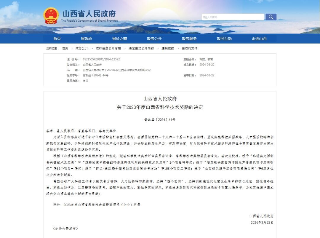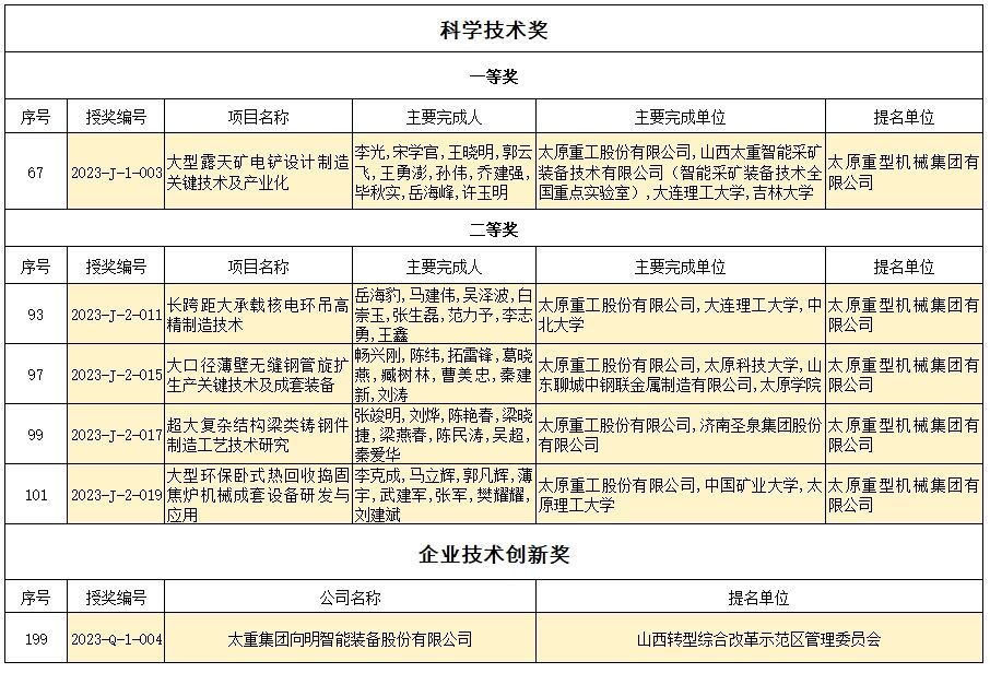 近日,山西省人民政府印發(fā)《關(guān)于2023年度山西省科學技術(shù)獎勵的決定》,對促進山西省科學技術(shù)進步和經(jīng)濟社會發(fā)展作出突出貢獻的科學技術(shù)人員和組織給予獎勵。太重集團5項成果喜獲山西省科學技術(shù)獎。太重向明榮獲企業(yè)技術(shù)創(chuàng)新獎。