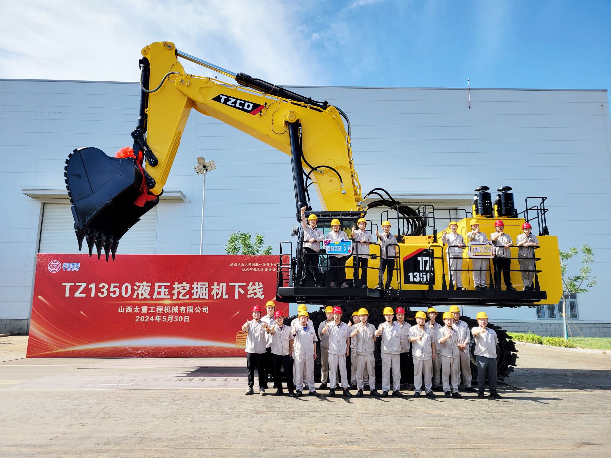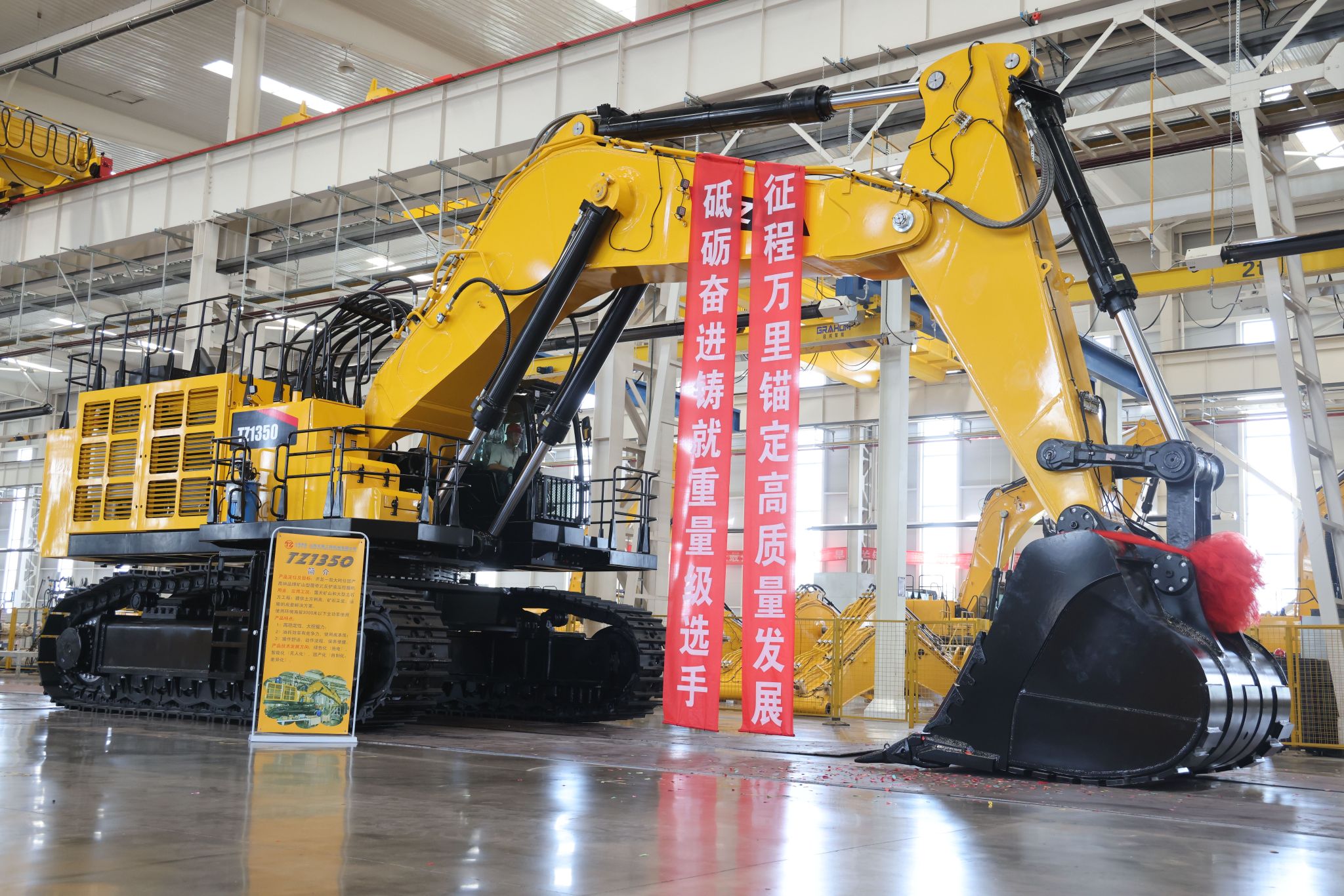 5月30日,太重智能高端液壓挖掘機(jī)產(chǎn)業(yè)園區(qū)迎來一位超百噸級(jí)的“重量選手”,它機(jī)身明黃、身帶紅花、頂天立地,在眾人期待目光中緩緩駛出,這臺(tái)TZ1350是太重自主研發(fā)、推入市場(chǎng)的又一款大噸位液壓反鏟挖掘機(jī),展開“太重臂膀”,擎起廣闊未來。針對(duì)露天礦山高溫、高寒、高海拔等情況,這個(gè)“大家伙”可是露天礦山采掘的一把好手