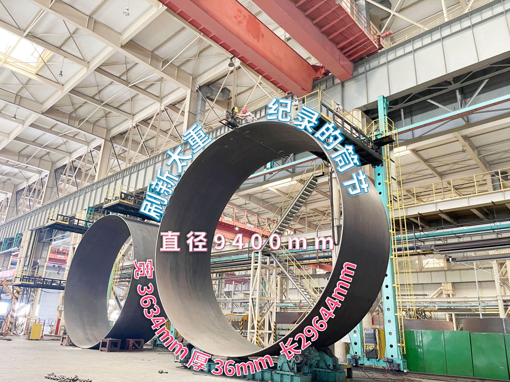 說(shuō)干就干!兩張鋼板拼接好后,一個(gè)新的難題擺在面前:“圈圓”直徑與寬度均超過(guò)了卷板機(jī)生產(chǎn)加工的極限。面對(duì)困難,濱海公司精心籌劃、精密安排,多次進(jìn)行技術(shù)及安全評(píng)估,決定在充分做好安全保障的前提下,對(duì)卷板機(jī)進(jìn)行科學(xué)改進(jìn),使其完美適配此次生產(chǎn)加工任務(wù),最終將焊接時(shí)間縮短了60%以上,整體“圈圓”進(jìn)度較生產(chǎn)計(jì)劃要求大大提前,9.4米超大直徑筒節(jié)就此在太重誕生!刷新筒節(jié)直徑紀(jì)錄的背后,是濱海公司對(duì)高質(zhì)量高效率的不懈追求,不僅為公司承攬其他相關(guān)業(yè)務(wù)積累了寶貴經(jīng)驗(yàn),也再一次用事實(shí)展現(xiàn)出太重出眾的制造實(shí)力。未來(lái),公司將乘勢(shì)而上、聚智聚力,進(jìn)一步增強(qiáng)港機(jī)、海工和化工產(chǎn)品生產(chǎn)制造本領(lǐng),為更多領(lǐng)域和行業(yè)的高質(zhì)量發(fā)展貢獻(xiàn)太重的裝備力量。