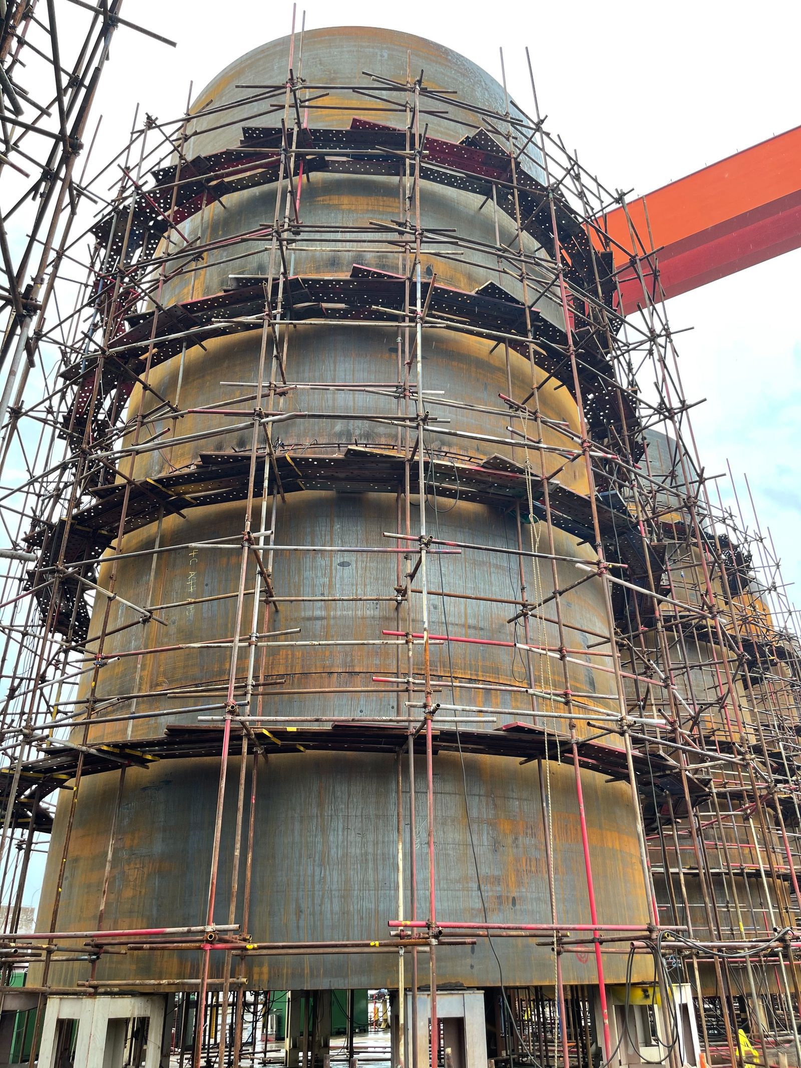 塔器作為用于蒸餾、提純、吸收、精餾等化工操作的工藝設(shè)備,工藝制作復(fù)雜,是業(yè)內(nèi)考驗(yàn)裝備制造企業(yè)實(shí)力的標(biāo)桿。此次濱海公司承攬的超限塔器設(shè)備,更是根據(jù)用戶需求全新定制,對(duì)具體部件的生產(chǎn)制造提出了更高要求。而“圈圓”,正是其中最具挑戰(zhàn)性的一個(gè)環(huán)節(jié)。