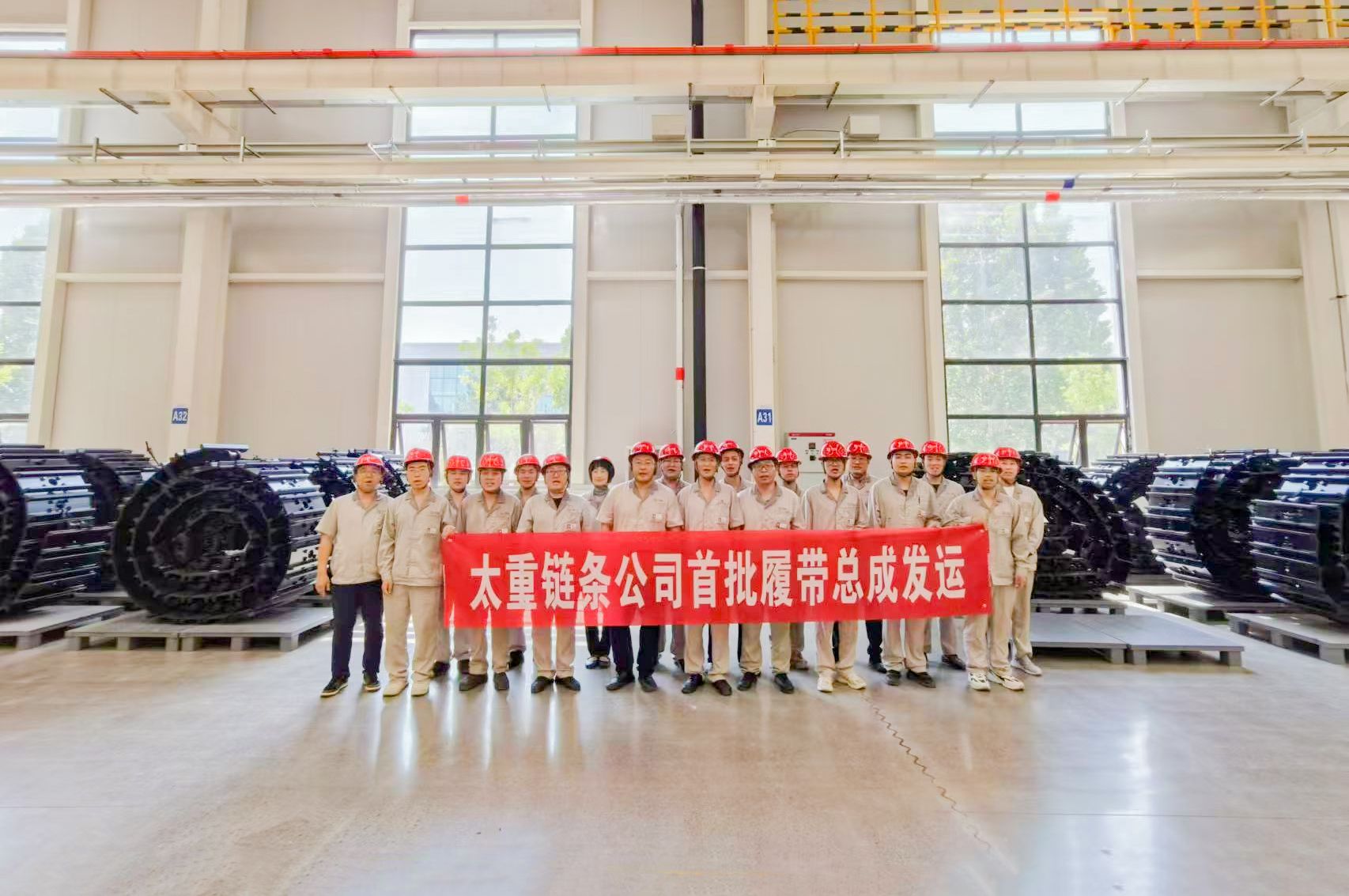 “四輪一帶”項(xiàng)目是集團(tuán)公司為推進(jìn)“3+5+3”產(chǎn)品布局,提升內(nèi)部“供應(yīng)鏈”制造能力新建的高端化、智能化、現(xiàn)代化工廠,集鍛造、加工、熱處理、焊接、裝配、涂裝等全工序?yàn)橐惑w,可實(shí)現(xiàn)0.8-200噸全系列挖掘機(jī)底盤“四輪一帶”部件的批量生產(chǎn),具備年產(chǎn)十萬(wàn)條履帶、近百萬(wàn)件四輪件的生產(chǎn)能力,可滿足五萬(wàn)臺(tái)套主機(jī)底盤件供貨能力。此次下線的履帶即為“四輪一帶”中的“一帶”,是履帶式工程機(jī)械的核心部件之一,其質(zhì)量和性能直接關(guān)系到整機(jī)的穩(wěn)定性和工作效率。產(chǎn)品好不好,源頭產(chǎn)線很重要。公司打造的這條履帶裝配線可不一般,機(jī)器人+3D視覺系統(tǒng)輔助裝配,自動(dòng)測(cè)距四爪定位保證裝配精度,組裝、壓裝、打卷、浸漆各道工序無(wú)縫銜接,每5分鐘即可下線一條履帶,行業(yè)領(lǐng)先的自動(dòng)化水平將為太重做精批量產(chǎn)品保駕護(hù)航。此次配套件履帶實(shí)現(xiàn)批量生產(chǎn),意味著公司能夠依靠先進(jìn)產(chǎn)線更有效地控制產(chǎn)品的一致性和可靠性,公司主機(jī)產(chǎn)品整機(jī)質(zhì)量控制水平進(jìn)入新階段。從第一根鋼柱起吊到第一臺(tái)設(shè)備進(jìn)廠,從第一條產(chǎn)線貫通到第一批產(chǎn)品下線,在這個(gè)過程中,鏈條公司的年輕團(tuán)隊(duì)充當(dāng)了主力軍。沒有任何經(jīng)驗(yàn)可以借鑒,那就從實(shí)踐中學(xué)習(xí)、在挑戰(zhàn)中成長(zhǎng),大家瞄準(zhǔn)項(xiàng)目目標(biāo)一路披荊斬棘?!皬臒o(wú)到有,太不容易!”鏈條公司履帶作業(yè)區(qū)負(fù)責(zé)人張厚東每當(dāng)回顧過往依然感慨萬(wàn)千。產(chǎn)品下線只是第一步,達(dá)產(chǎn)達(dá)效更是關(guān)鍵一環(huán)。下一步,鏈條公司將持續(xù)聚焦做精批量產(chǎn)品,推進(jìn)產(chǎn)線貫通,完善源頭工序調(diào)試,在保證內(nèi)部供應(yīng)的同時(shí),積極開發(fā)外部市場(chǎng),讓太重“四輪一帶”產(chǎn)品走向更大發(fā)展空間,以扎實(shí)可靠的“底盤”功夫?yàn)楣靖哔|(zhì)量高速度發(fā)展蓄勢(shì)賦能!