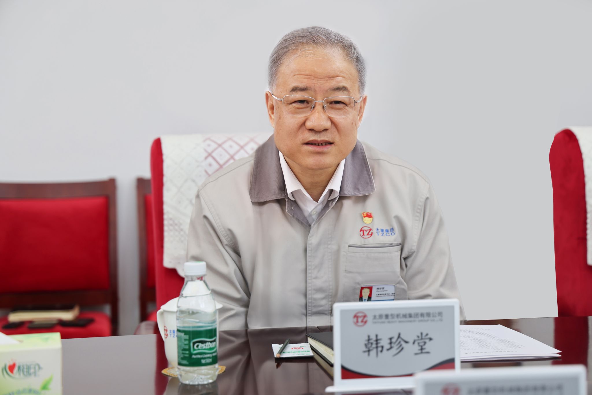 韓珍堂對客人一行的到來表示熱烈歡迎,對汾飛集團長期以來的大力支持和幫助表示衷心感謝,他說,近年來太重以科技創(chuàng)新推動產(chǎn)業(yè)創(chuàng)新,大力推進現(xiàn)代化產(chǎn)業(yè)體系建設(shè),加快發(fā)展新質(zhì)生產(chǎn)力。在工程項目建設(shè)上穩(wěn)扎穩(wěn)打、循序漸進,秉持著成熟一個、推動一個的原則,加速擴展“一總部、多園區(qū)”發(fā)展格局,十里太重新城正成為制造業(yè)振興崛起的重要地標(biāo),一個活力滿滿、熱氣騰騰的太重強勢崛起。同時,公司聚焦“高端化、智能化、綠色化、國產(chǎn)化”產(chǎn)品定位,構(gòu)建起了“3+5+3”太重特色產(chǎn)品體系,與多家行業(yè)頭部企業(yè)達成戰(zhàn)略合作協(xié)議,在暢通供應(yīng)鏈、延伸產(chǎn)業(yè)鏈、提升價值鏈方面積極作為,推動裝備制造業(yè)高質(zhì)量發(fā)展。瀟河綠智城是山西的未來之城,汾飛集團與太重集團同屬國有企業(yè),有著廣闊的合作空間,希望雙方進一步建立高效溝通機制,加強協(xié)調(diào)對接,探索構(gòu)建更為廣泛、更加全面的合作關(guān)系,共同為譜寫中國式現(xiàn)代化山西篇章貢獻力量。