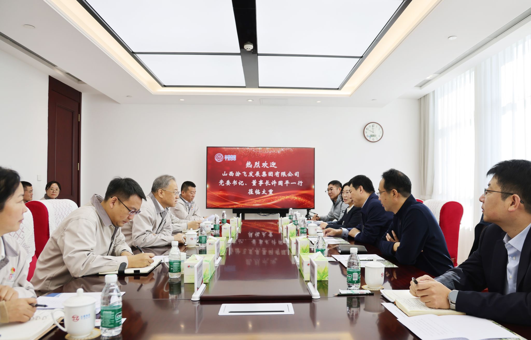 10月28日,集團公司黨委書記、董事長韓珍堂熱情接待了山西汾飛發(fā)展集團有限公司黨委書記、董事長許國平一行,雙方圍繞持續(xù)拓寬合作領(lǐng)域、提升合作層次、創(chuàng)新合作方式展開深入交流。