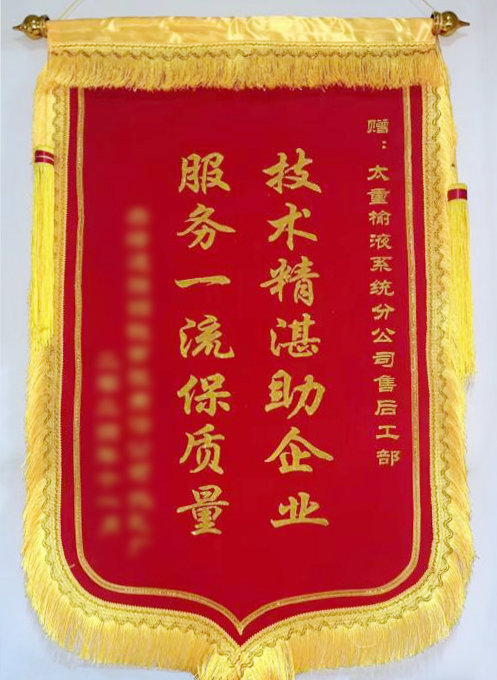 “技術(shù)精湛助企業(yè) 服務(wù)一流保質(zhì)量”,在干勁滿滿沖刺四季度的同時,近日,太重榆液收到內(nèi)蒙古用戶送來的錦旗。金光閃閃的14個字,不僅僅是對太重專業(yè)團隊技術(shù)能力的信任和贊許,更是對公司持續(xù)完善用戶服務(wù)體系、全面提升用戶服務(wù)質(zhì)量的最好肯定。