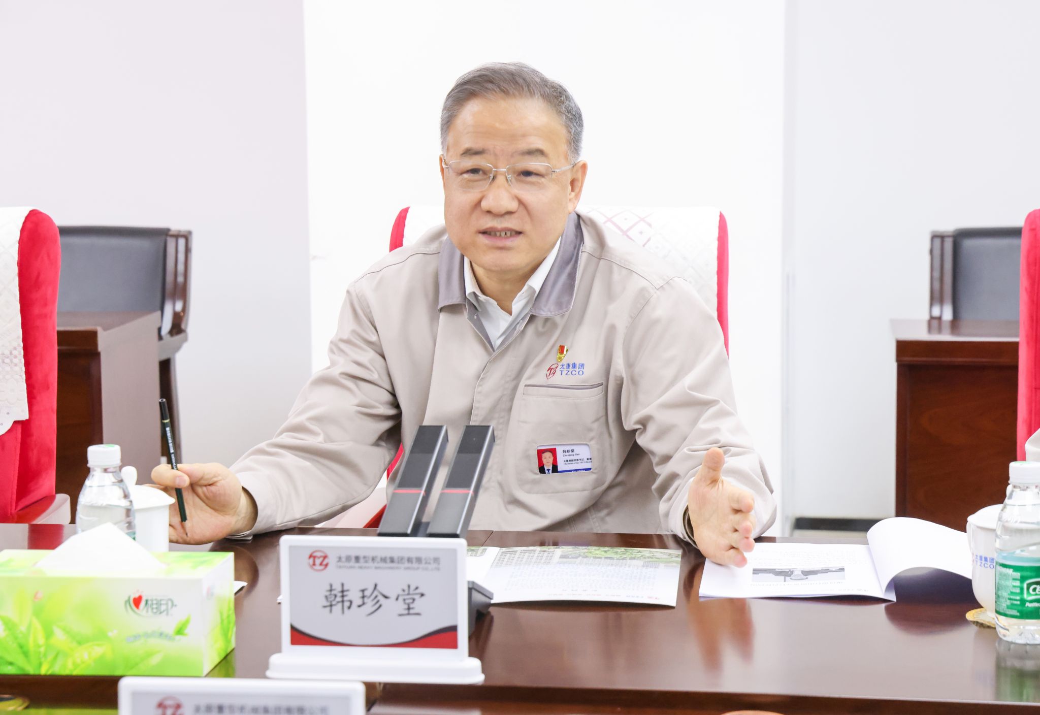 韓珍堂對客人一行的到來表示熱烈歡迎,對建行山西省分行長期以來的高度關注和大力支持表示感謝,并簡要介紹了公司改革發(fā)展、產(chǎn)業(yè)布局、科技創(chuàng)新、國際化推進、人才隊伍建設等方面的情況。他說,在省委、省政府的關心和支持下,太重聚焦發(fā)展新質生產(chǎn)力重點任務,不斷加大研發(fā)投入,積極引進高科技人才,依托全國重點實驗室和國家級企業(yè)技術中心,構建起“一重點、一中心、多基地”技術研發(fā)體系。當前,公司的礦用挖掘機、工業(yè)起重機、冶金裝備等傳統(tǒng)產(chǎn)品實現(xiàn)“老樹發(fā)新芽”,市場地位持續(xù)提高;軌道交通、高端液壓件等戰(zhàn)新產(chǎn)品不斷突破“卡脖子”技術,國產(chǎn)化替代穩(wěn)步推進;工程挖掘機、工程起重機、新能源叉車、寬體車等批量產(chǎn)品集群發(fā)展,行業(yè)影響力快速提高。同時,公司堅持全球化戰(zhàn)略和國際化視野,不斷加快“走出去”的步伐,建設具有國際一流競爭力的現(xiàn)代智能裝備制造企業(yè),太重勢頭強勁、信心十足!裝備制造業(yè)的發(fā)展離不開金融系統(tǒng)的支持,雙方合作友誼深厚、發(fā)展空間廣泛,希望以本次交流為契機,充分發(fā)揮各自優(yōu)勢,相互賦能、共同發(fā)展,在扎實推進中國式現(xiàn)代化山西實踐中,打造互利共贏的銀企合作新典范。