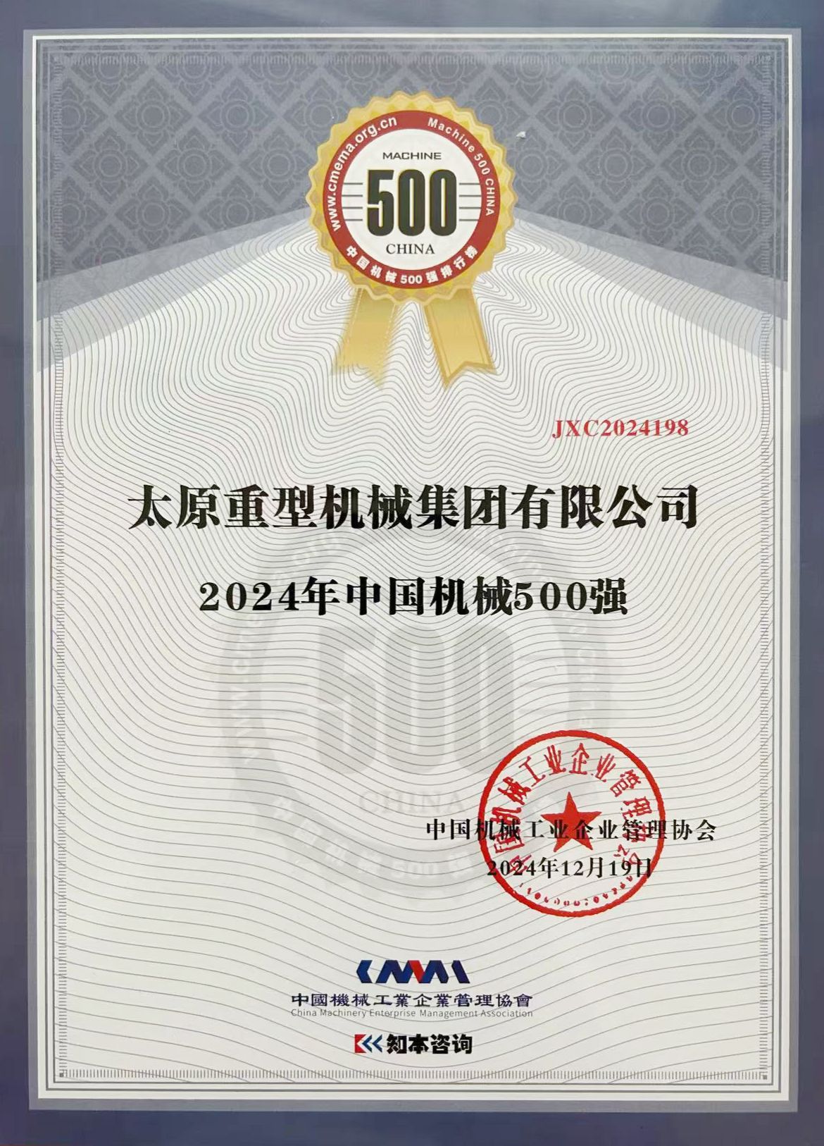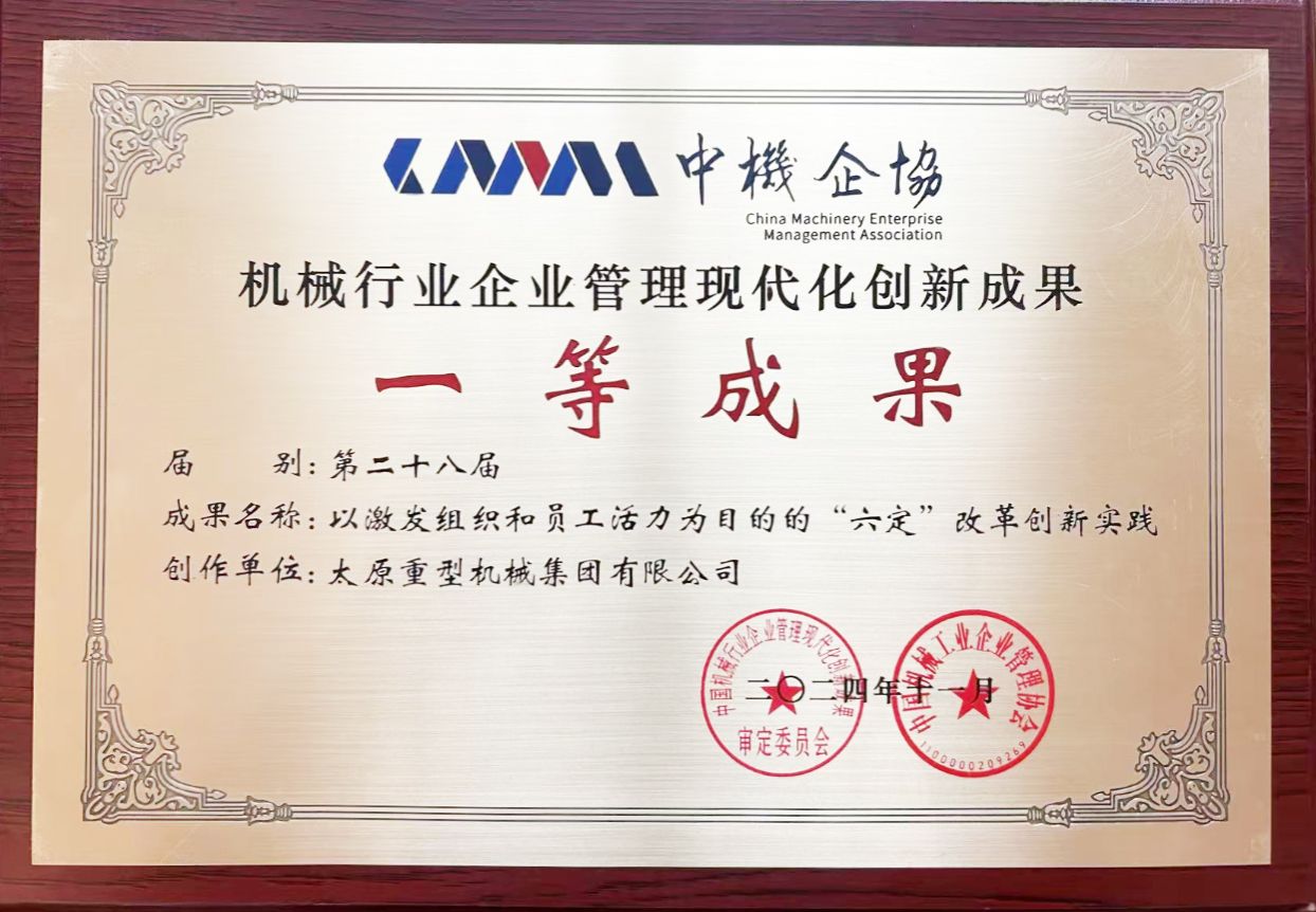 太原重型機(jī)械集團(tuán)有限公司蟬聯(lián)上榜中國(guó)機(jī)械500強(qiáng);太重“‘六定’改革創(chuàng)新實(shí)踐”項(xiàng)目榮獲機(jī)械行業(yè)企業(yè)管理現(xiàn)代化創(chuàng)新成果一等成果;太重榆液喜獲“管理基礎(chǔ)工作規(guī)范化達(dá)標(biāo)企業(yè)”稱號(hào)。各類獎(jiǎng)項(xiàng)統(tǒng)統(tǒng)“拿捏”