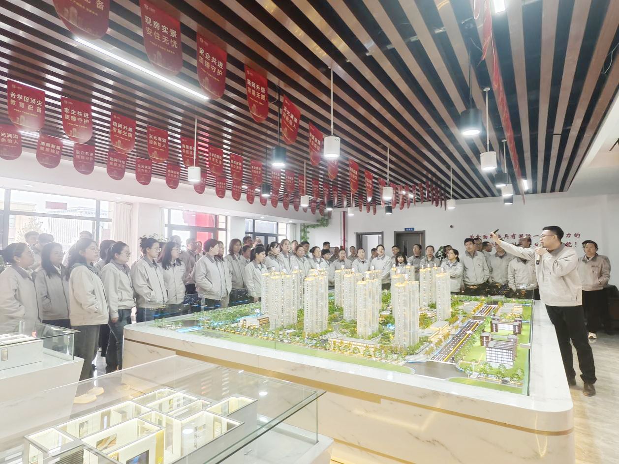 在沙盤展示區(qū),工作人員詳細講述項目的區(qū)位優(yōu)勢與配套規(guī)劃。從127㎡-190㎡南北通透大三居、大四居全明戶型設計,到智能安防系統(tǒng)的科技賦能;從高端園林景觀到童夢樂園建設,職工們仔細聆聽,對“出門即上班、下班即回家”的產(chǎn)城融合生活充滿期待。
