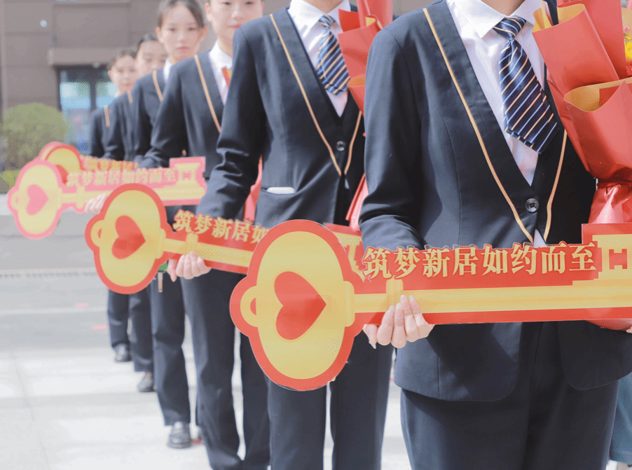 儀式上,8門金色禮炮齊聲轟鳴,公司領(lǐng)導將金燦燦的新房鑰匙交到職工代表手中。手握通往新家園、新生活、新美好的鑰匙,此時此刻,萬千期待終不負美好相見,理想生活的藍圖自此開啟,職工們喜上眉梢、笑容滿面。