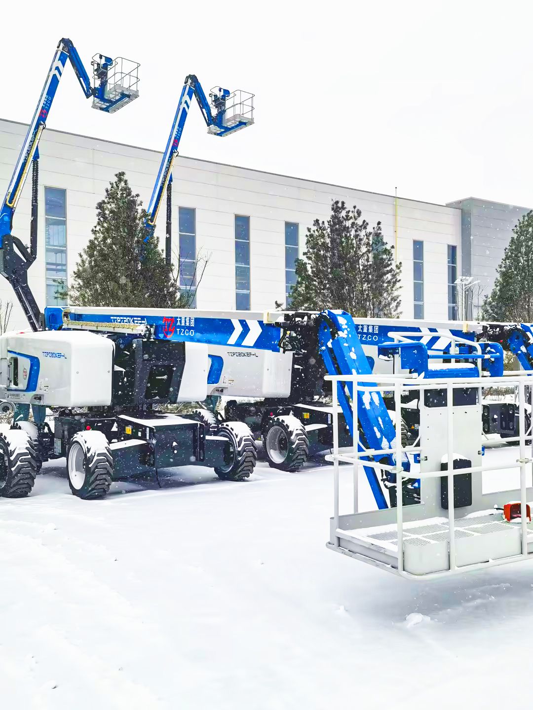 白雪皚皚間,一臺(tái)臺(tái)整裝待發(fā)的艷麗產(chǎn)品默然矗立,宛如彩塑靜立于純白畫卷。