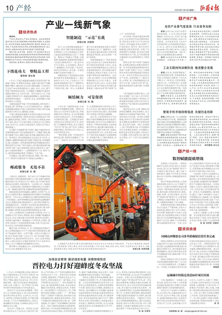 1月9日,山西日報刊發(fā)《產(chǎn)業(yè)一線新氣象》文章,報道太重集團(tuán)深耕智能制造,厚植創(chuàng)新發(fā)展,為推動全省“兩個轉(zhuǎn)型”交上了優(yōu)異答卷。深化改革以來,公司把創(chuàng)新作為引領(lǐng)發(fā)展的第一動力,大力發(fā)展智能設(shè)計(jì)、智能制造、智能產(chǎn)品和智能服務(wù),以市場為導(dǎo)向,以自主研發(fā)為基礎(chǔ),發(fā)揮公司在科技創(chuàng)新和機(jī)械制造方面的優(yōu)勢,通過高技術(shù)、高質(zhì)量獲取競爭優(yōu)勢,為用戶提供智能、安全、高效的產(chǎn)品。公司作為我省“雙鏈主”企業(yè),加強(qiáng)協(xié)同創(chuàng)新,推動行業(yè)發(fā)展,打造具有國際一流競爭力的現(xiàn)代智能裝備制造企業(yè),為推動中國“智”造、建設(shè)制造強(qiáng)國作貢獻(xiàn)。下面對太重相關(guān)內(nèi)容進(jìn)行轉(zhuǎn)載。