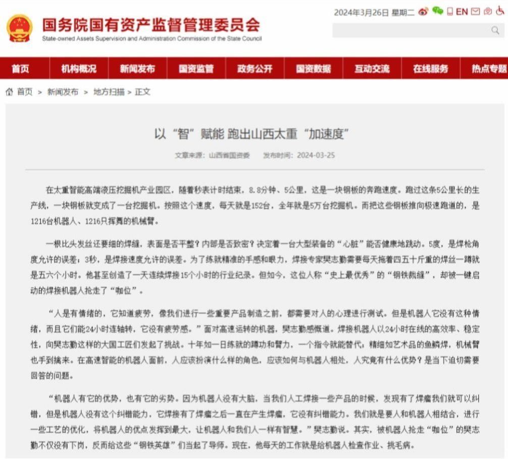 在人工智能時(shí)代,AI以“智”賦能,讓太重集團(tuán)實(shí)現(xiàn)了研發(fā)、制造、銷售、物流、售后全流程的數(shù)字“智造”。而生產(chǎn)方式的變革,也為這個(gè)創(chuàng)造了500多項(xiàng)中國(guó)和世界第一的新中國(guó)第一座重型機(jī)械廠,再一次刷新速度、創(chuàng)造奇跡。