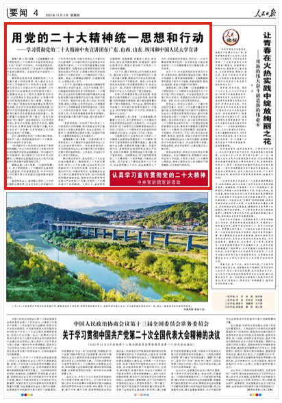 人民日報刊發(fā)的《用黨的二十大精神統(tǒng)一思想和行動——學習貫徹黨的二十大精神中央宣講團在廣東、山西、山東、四川和中國人民大學宣講》文章,對公司職工王永晶進行了采訪報道。