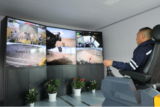 公司為霍林河南露天煤礦提供的WK-12C電鏟,配備了遠(yuǎn)程操控智慧化解決方案。通過(guò)對(duì)現(xiàn)場(chǎng)畫(huà)面、聲音、振動(dòng)等環(huán)境感知和模擬,用戶可以在距離現(xiàn)場(chǎng)10km之外的遠(yuǎn)程操作室,對(duì)電鏟進(jìn)行操作控制,全鏈路延時(shí)控制在250ms以內(nèi)。